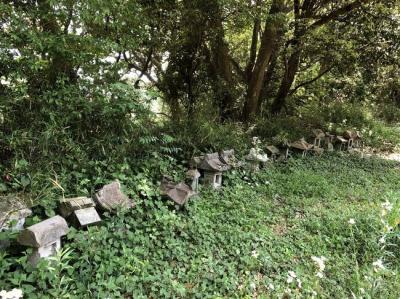 草むらに小さな祠が並んでおり、映画『千と千尋の神隠し』のワンシーンのよな不思議な雰囲気でした。