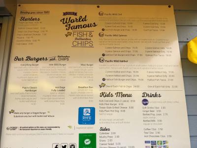 メニューにはハンバーガーやフィッシュバーガー、サラダ、シーフードチャウダーなどもあります。