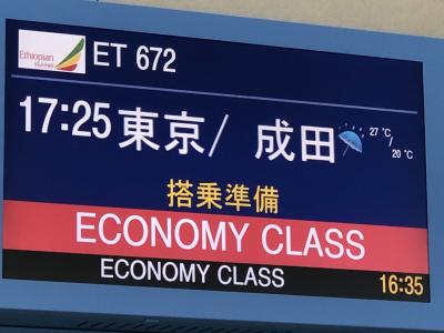 エチオピア航空のアディスアベバ発ソウル経由東京・成田行きの後半の以遠権フライト・ET672便・ソウル(17:25発)⇒東京・成田(20:15着)の飛行時間2時間50分の夕方便を利用しました。