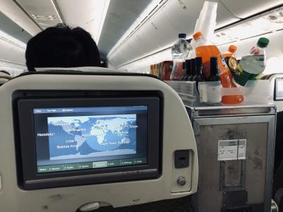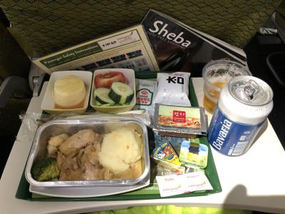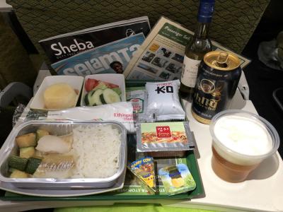 飲み物はアルコールに各種ソフトドリンクとカート満載です。今回は白ワイン(フランス産)&前回搭乗時は搭載されていなかったエチアピアビアを遂にGET!