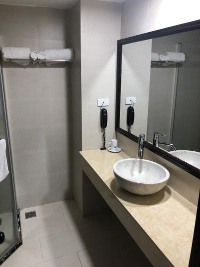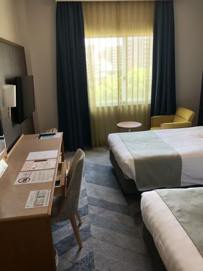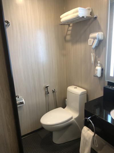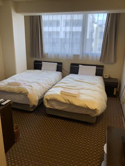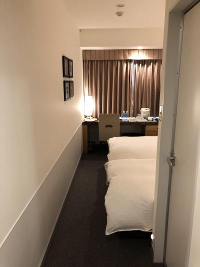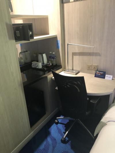 部屋はスタンダードツインルームでシングルベット2台でした。シャワーonlyですが洗面台は広く作られていて機能的です。ミニベランダが付いていたのと外の窓に向かって作業用の横長テーブルが配されていて明るい室内でした。