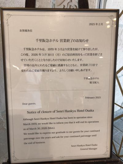 1970年の大阪万博の際に開発された千里のホテルでその後の増改築を繰り返して巨大化しているので館内動線は少し複雑で昔のデザインが故に館内はバリアフリーとはいかずあちこち傷んでる所は見受けられましたが改修してホテルを再生するという方法を阪急グループは取らなかったのが残念です。