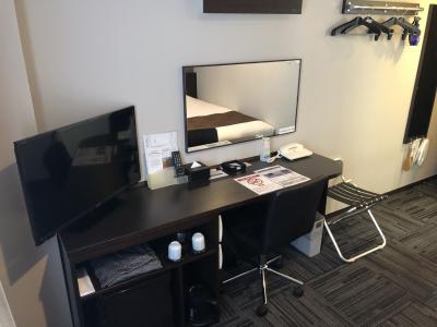 客室はダークな色調で落ち着いた都会的なセンスの内装で大きな窓が有って明るく機能的なデスク周りにベットも使い易くて快適です。