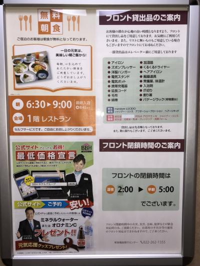 仙台では昨今ホテル代が高騰してますがゲストハウスのドミトリーやカプセルホテル並の料金でシングルのお部屋が確保出来るので駅近の条件は捨ててでも金銭面を優先する方には重宝するホテルです。