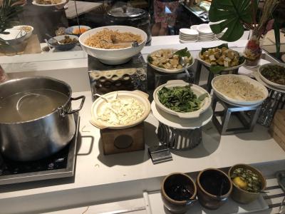 朝食会場は写真の通りベトナム料理から中華に洋食に至るまで幅広く用意されています。 ベトナム式サンドイッチのバインミーやベトナムコーヒーに今日のフォーといった感じでベトナム料理も多数有りました。