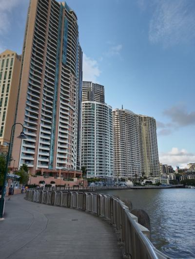 ブリスベンのcity中心部は大きく蛇行したブリスベン川の内側に有りますがそのブリスベン川沿いに整備された遊歩道がシティ リーチ ボードウォークです。