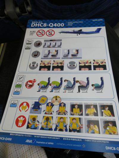 利用便はANA4939便・福岡(18:10発)⇒対馬(18:45着)の飛行時間は35分の超近距離離島便のフライトでプロペラ機のボンバルディア・ダッシュ8ーQ400型機での運行でした。