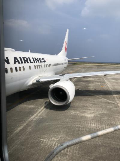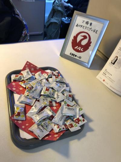 JAL国内線の主力機材ボーイング737-800型機でフライト後半は上空悪天候の為客室乗務員も着席する程揺れてました。