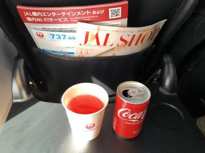 フライト前半は気流もスムーズでドリンクサービスではスカイタイム桃味とコーラを頂きます。