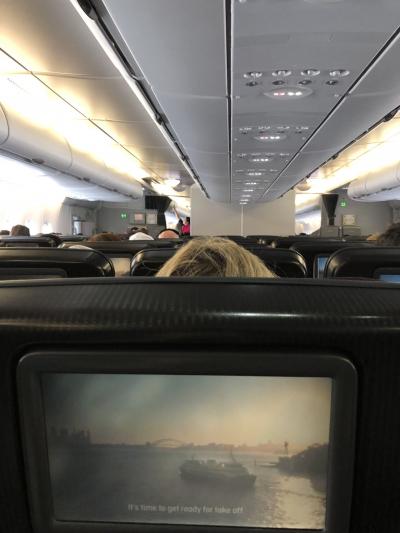 このフライトは機材が2階建のエアバス380ー800型機に変更になったので満席かと思えばガラガラでした。