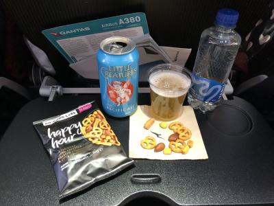 飲み物は搭載便が限定されますがカンタスで開発されたスピリッツのカクテル(SOFI)を頂きます。こちらも豪州産でさわやかな口当たりです。