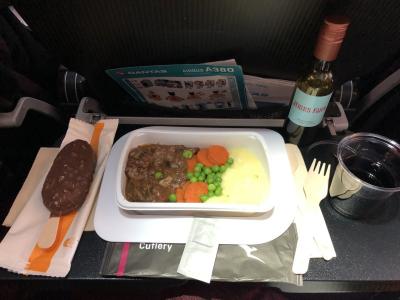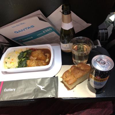 カンタスはメインミールがちょっと質素........美味しいけど物足りません。クルーは大変フレンドリーなので1度お願いするとミールも豊富なお菓子もドリンクもお代わりをドンドン勧めてきます(笑)。