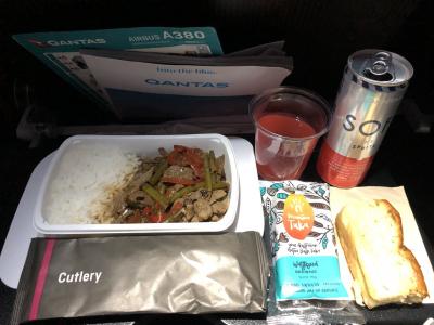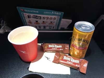 *コーヒー・ティムタム付き。豪州産ジンジャービアーもカンタスなら常備してるので頂きます。