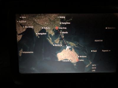 で利用したフライトはQF127便・シドニー(10:15発)⇒香港(16:35着)の飛行時間約9時間20分の日中のフライトです。