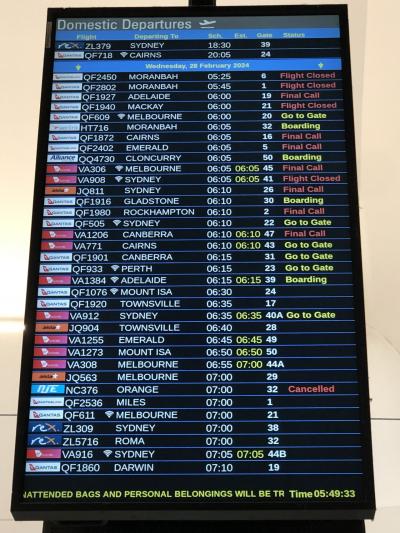 平日のカンタス航空国内線(QF505便06:10発シドニー行き)に乗る為にやって来ましたが豪州国内各社早朝から各方面へフライトを出している為に想像以上に混み合っていました。