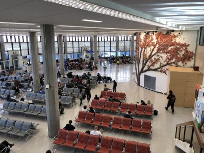 空港へ向かう電車は空いていたのにターミナルは激混みで、、、、、