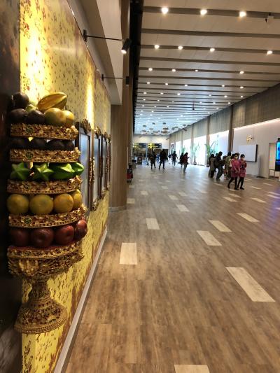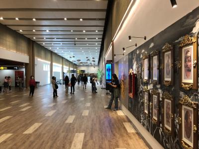 長い事工事をしていましたがついに完成したターミナルビルは到着動線も広々としていて木材を多用した落ち着いた内装でバリをモチーフにした絵画彫刻があちらこちらに展示して有って旅行の高揚感を高めてくれる作りになってました。