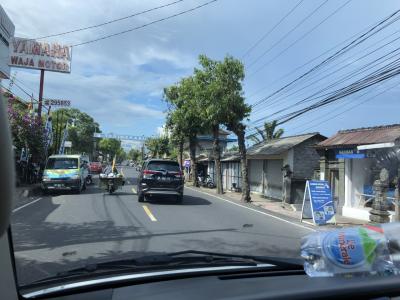 この時14:00発のシャトルバスは小型ワゴンで運行されて乗客3人&運転手さんという構成で途中サヌールのプラマ社営業所前(14:47着)で2人下車したのでウブド迄は運転手さんと2人きりでドライブ状態でした(笑)