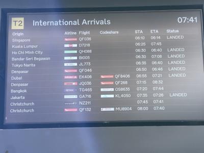 カンタス航空46便でバリ・デンパサールから夜行便で早朝06:50にメルボルン国際空港に到着しました。