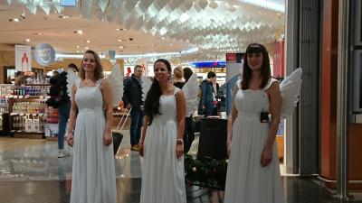 フランクフルト空港に天使がいました。天使たちはきれいな歌声を披露してく...