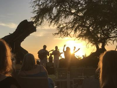 日本で予約して行きました。3-5分ほど待ちすぐに席へ。ドリンクのみにしたので前のほうに座る事が出来ました。夕暮れと演奏、歌、フラ、もう雰囲気は抜群に良く、とても楽しめました。カクテルとビールを注文しましたが、とても美味しかったです。また接客もきちんとしていて、さすがハレクラニです!日本人観光客も多いですが、外国人観光客も多いですので一緒に素晴らしい時間を過ごす事ができると思います。