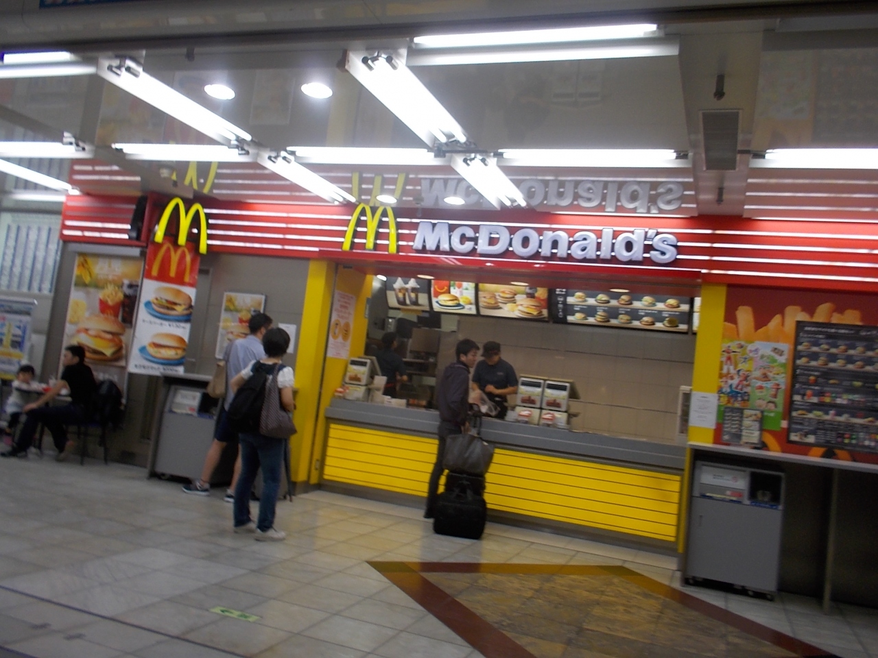 モノレールの改札口を降りると、すぐにマックがあるので便利です。 メニューも、ほかのマックと同じなので、メニューで選ぶ手間が省けますが、テーブルが1つしかないので、座って食べられるのは2~3人で、あとは全てテイクアウトになります。