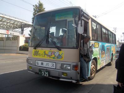 数年間、値上げもせずに、弘前市内の主要な場所に100円で行ける便利なバスで、土手町コースや城東、さくらのコースもあります。 イトーヨーカドーの1階から出ていますが、途中下車しなければ、100円で弘前城を通り、弘前市内を1週出来ます。