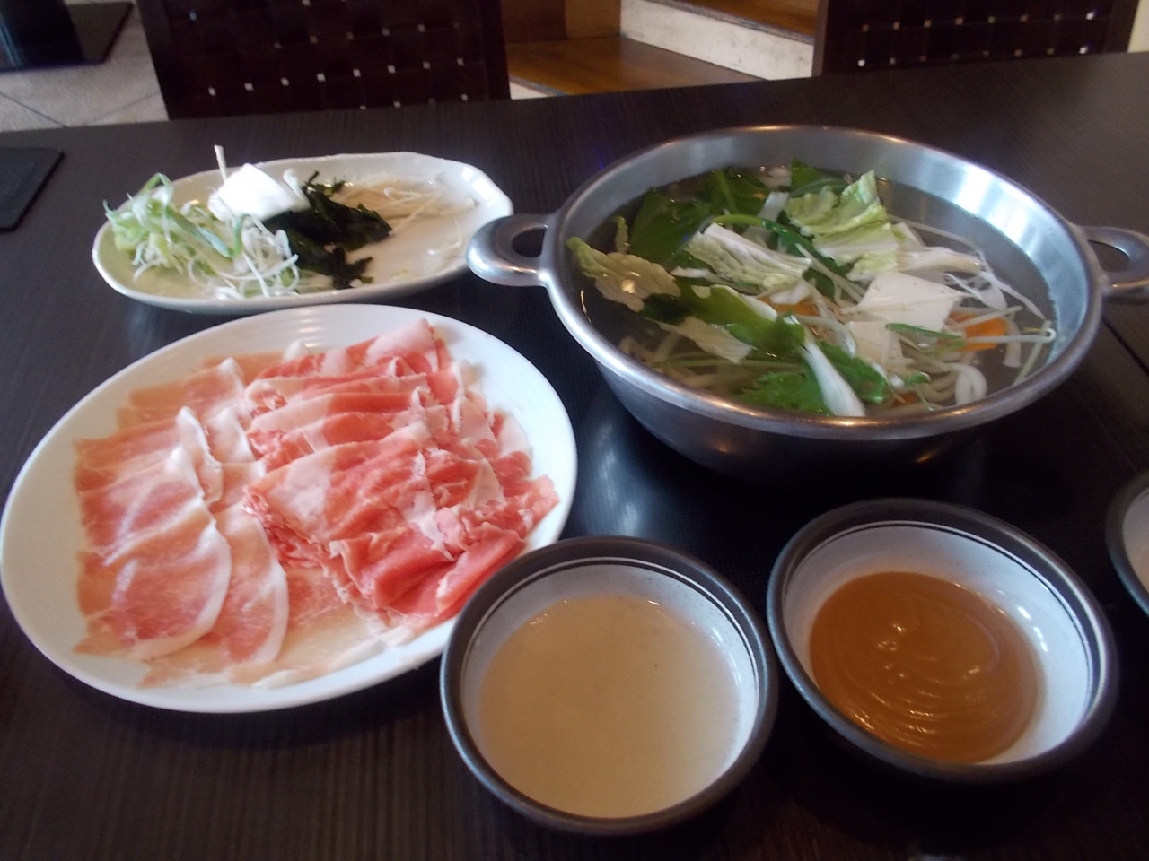 プラーレの6階にある「しゃぶしゃぶ」のお店で、「すき焼き」も食べられます。 最初に肉の量を選べば、野菜やドリンクは食べほうだいです。 2人用のテーブルが2つありますが、あとは全て4人用のテーブルで、窓側に座れば松戸の東口の街並みを見る事が出来ます。