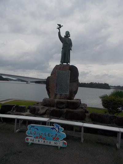 昼食をとるために、パールセンターに寄りましたが、 海に向かった岸辺に「天草 四朗」の像がありました。 ほかの天草 四朗の像に比べれば、非常に若く見えて、とてもヒーローとは思えませんでしたが、若い天草 四朗を見られるのは、ここだけでした。