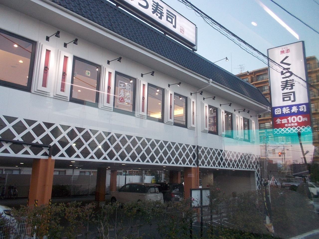 ほかの「くら寿司」の店舗と同じように、1階が駐車場になっていて、2階が回転寿しの店舗になっています。 ベルトコンベアーで流れてくるお皿には、ほこり除けのため、プラスチック・ケースが乗っていますが、お皿の下を引けば、簡単に寿司を取る事が出来ます。 また、流れていない寿司は、タブレット・スクリーンをタッチすれば、好きなスシをオーダー出来ます。