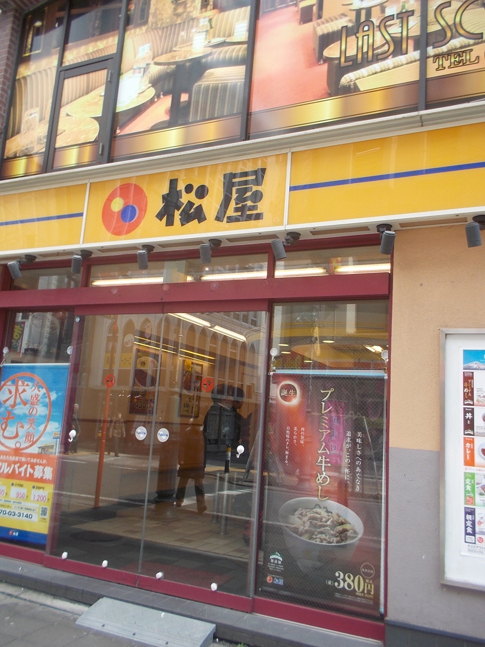 急いでいる時は、この松屋は、松戸駅前にあって、とても便利です。 24時間営業だし、料理はすぐに出て来ます。 もっとも、すでに出来ている料理をオーブンで温めているだけなのかも知れませんが・・・・ 私のお気に入りは、ロコモコ風、目玉焼きを載せたハンバーグ弁当です。