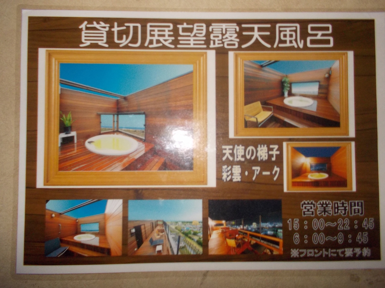 バス停から近いが、ホテルの看板がないので、初めてだと分かりにくいが、料理が美味しくて、特に6階から階段を歩いて登った7階には、貸し切りの露天風呂があって、窓からは、近くの白子の風景が見える他、九十九里浜の海まで見えるので、とても満足なホテルでした。