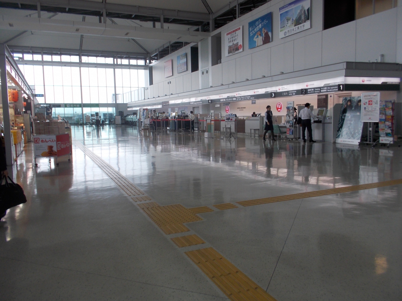 JR小倉駅からは、やや遠いが、飛行機の本数が少ないだけに、人の数もそれに比例して少ない上に、割と新しい(?)空港なので、清潔感があります。 空港内部も分かりやすく、コンパクトな設計になっていて、飛行機の離着陸を見ながら、お茶でもしたいような空港です。