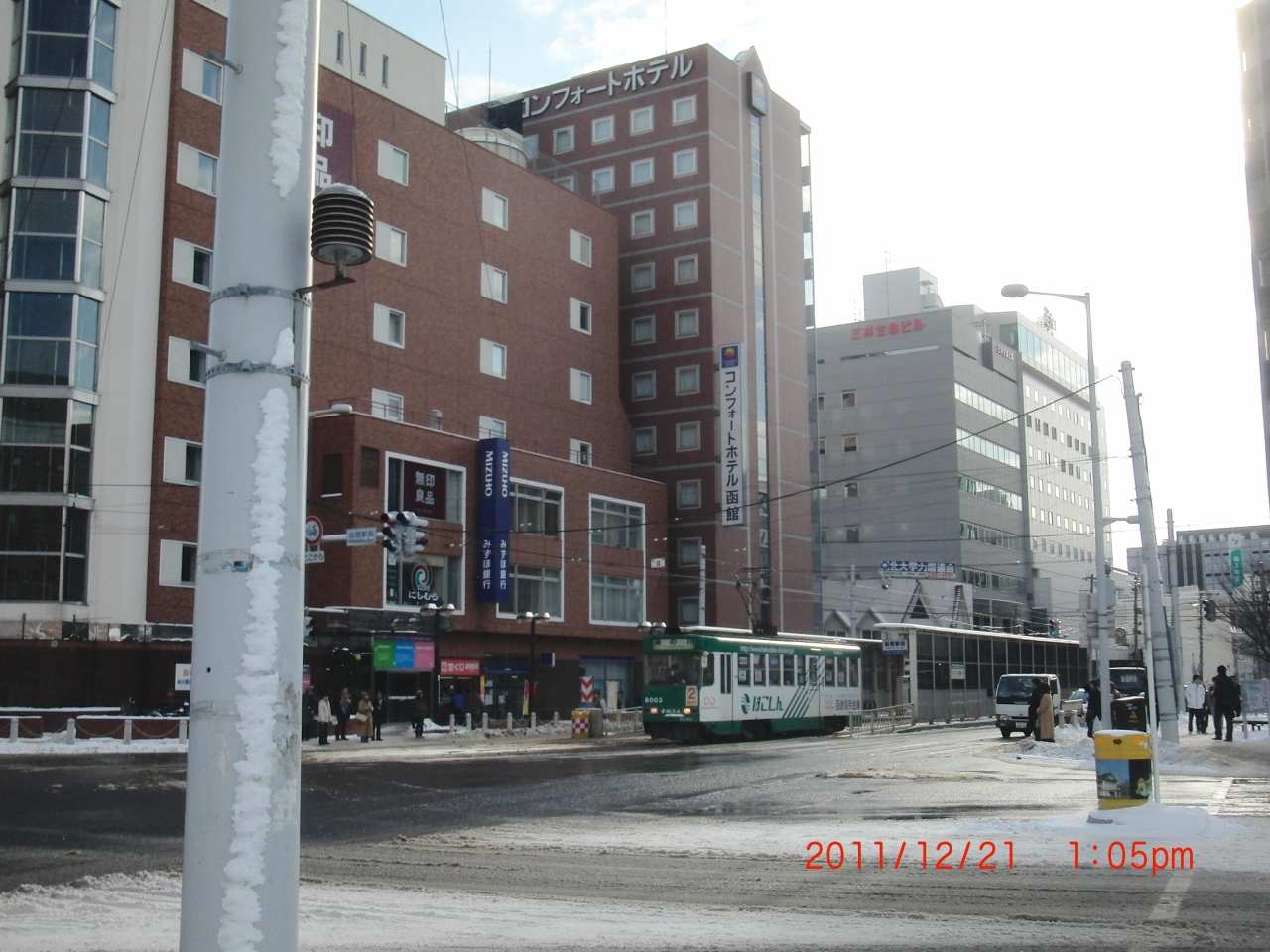 ホテルは、函館駅から歩いて、2分位なので、市電に乗るのもバスに乗るのも非常に便利で、値段も経済的です。 とくに無料の朝食は、おいしくて毎日食べていても飽きません。 ホテルの窓からは、函館駅の夜景が綺麗に見る事が出来ます。