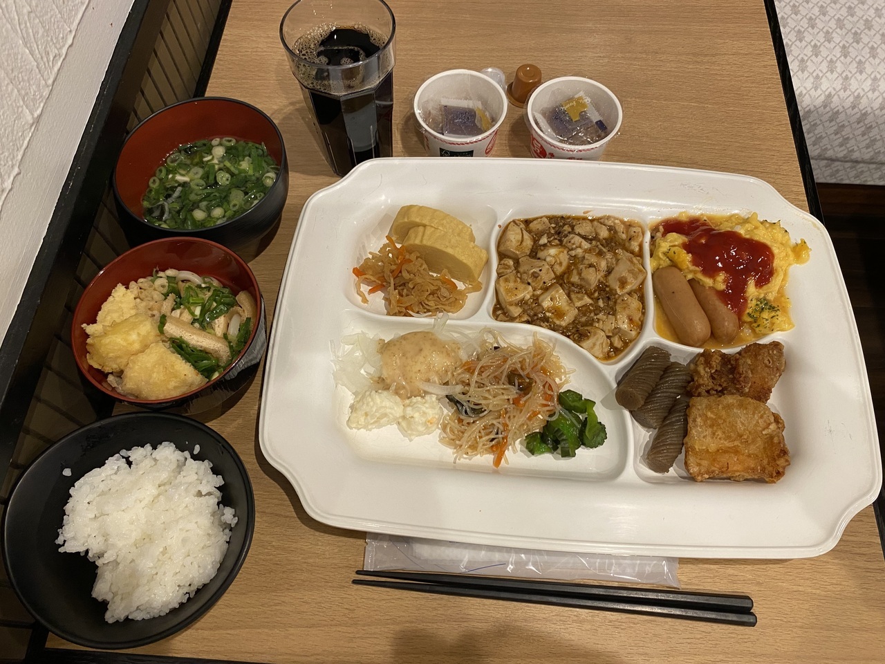 出張で利用しました。ホテル前はレストランなど揃ってます。ルートインホテルの自慢のビジネスホテルだけど大浴場ついてます。人工温泉ですが。。。レストランありますので夕食で晩酌もかのうです。ロビー前にはフリードリンクのコーヒーマシーンがあります。ランドリー自販機コーナーは1階にあります。朝は早めにバイキングAM6:30~営業してます。和食と洋食揃ってます。パンはヨーロピアンブレンドで4種類ほどあります。部屋のアメニティーは完璧です。
