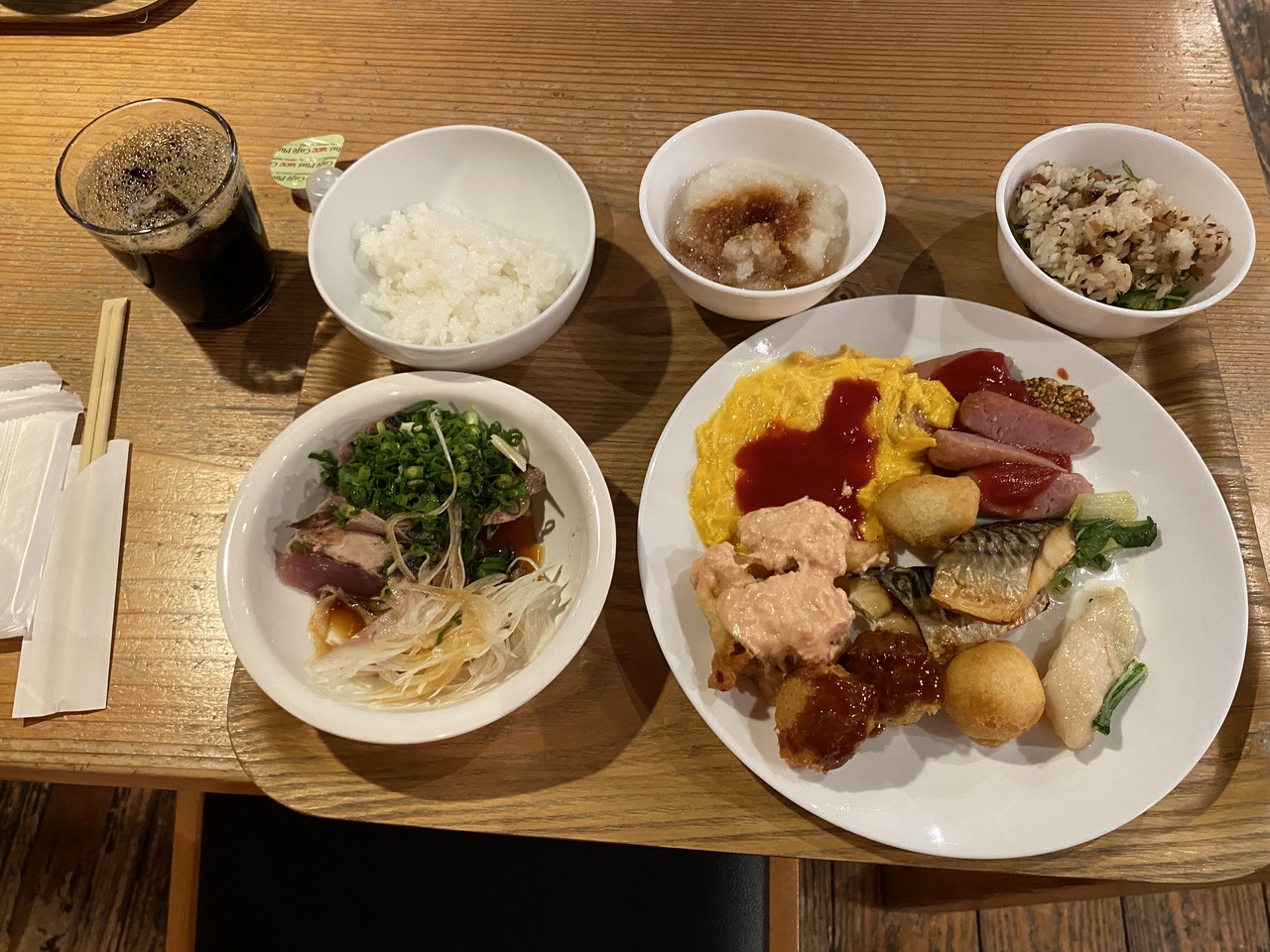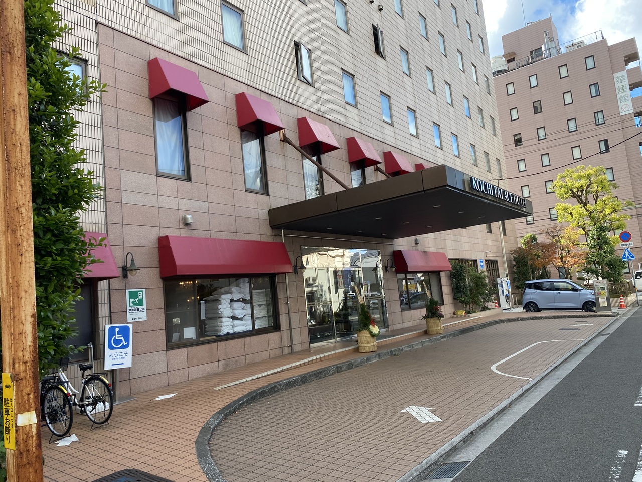 JR高知駅から徒歩7分、有名なひろめ市場には約10分、はりまや橋にも徒歩5分ほどで着くかなり観光に便利やホテルです。部屋はシングルですがソファーもあり、アメニティーはフロントにて。荷物もチェックアウトの後の翌日も預かってもらい観光に助かりました。朝食バイキングはカツオのたたきが皿盛りでドーンと付いてきます。他にも干物など品数豊富な満点の朝食でした。