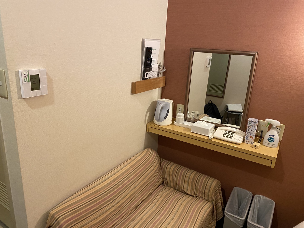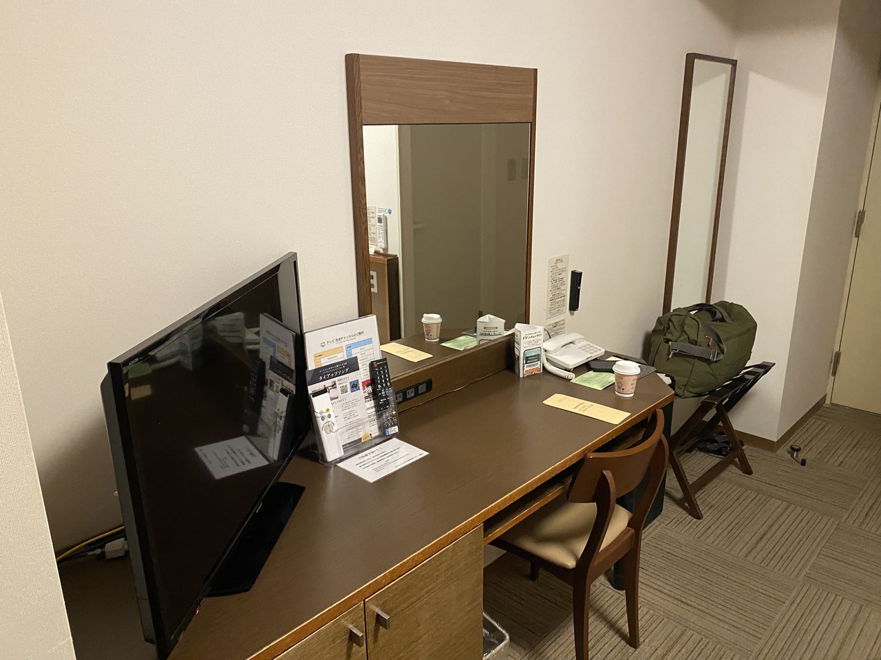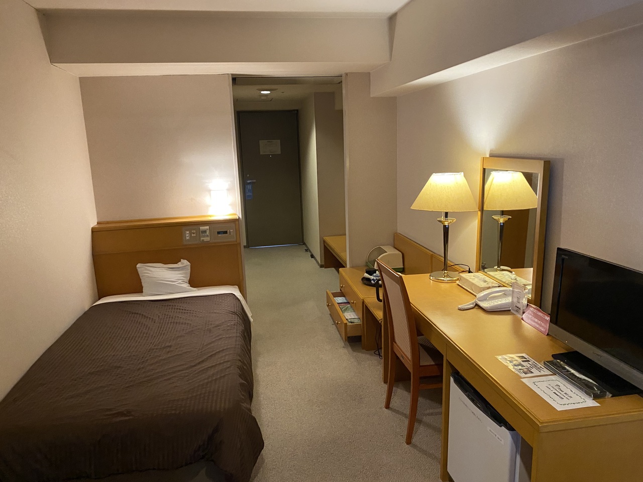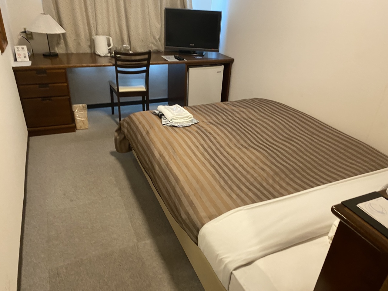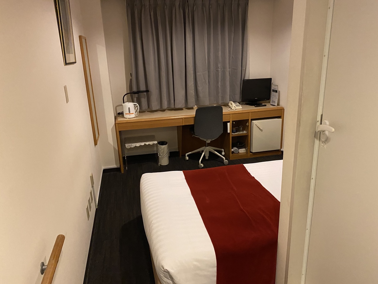 昨今の東京のホテル事情はどんどん悪くなるばかりです。23区内の10,000円以下のホテルはほぼカプセルやドリトミタイプしかなく、やはり鍵のあるホテルがよく今回は早めに楽天トラベルで探しましたが、前回の南千住からかなり離れて中央線沿線日野駅でようやくビジネスホテル5,200円でゲットしました。駅から徒歩3分、建物は新しく洋室と和室から選べます。食事はフレッシュネスバーガーや日高屋が近くにあります。