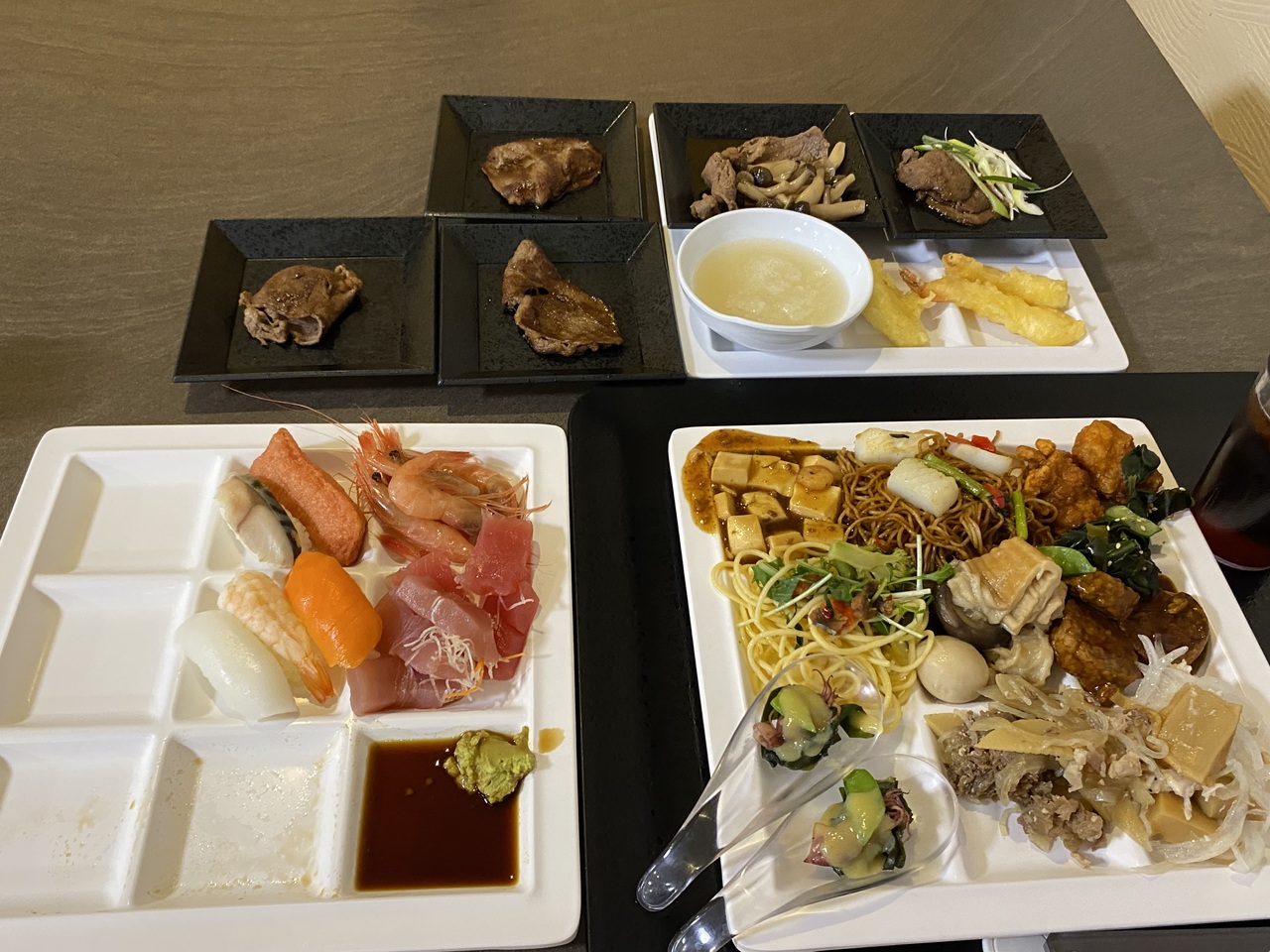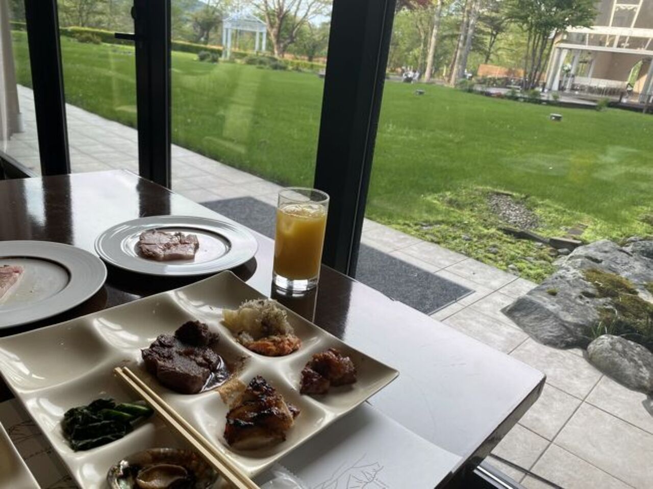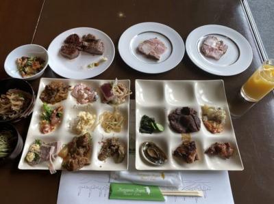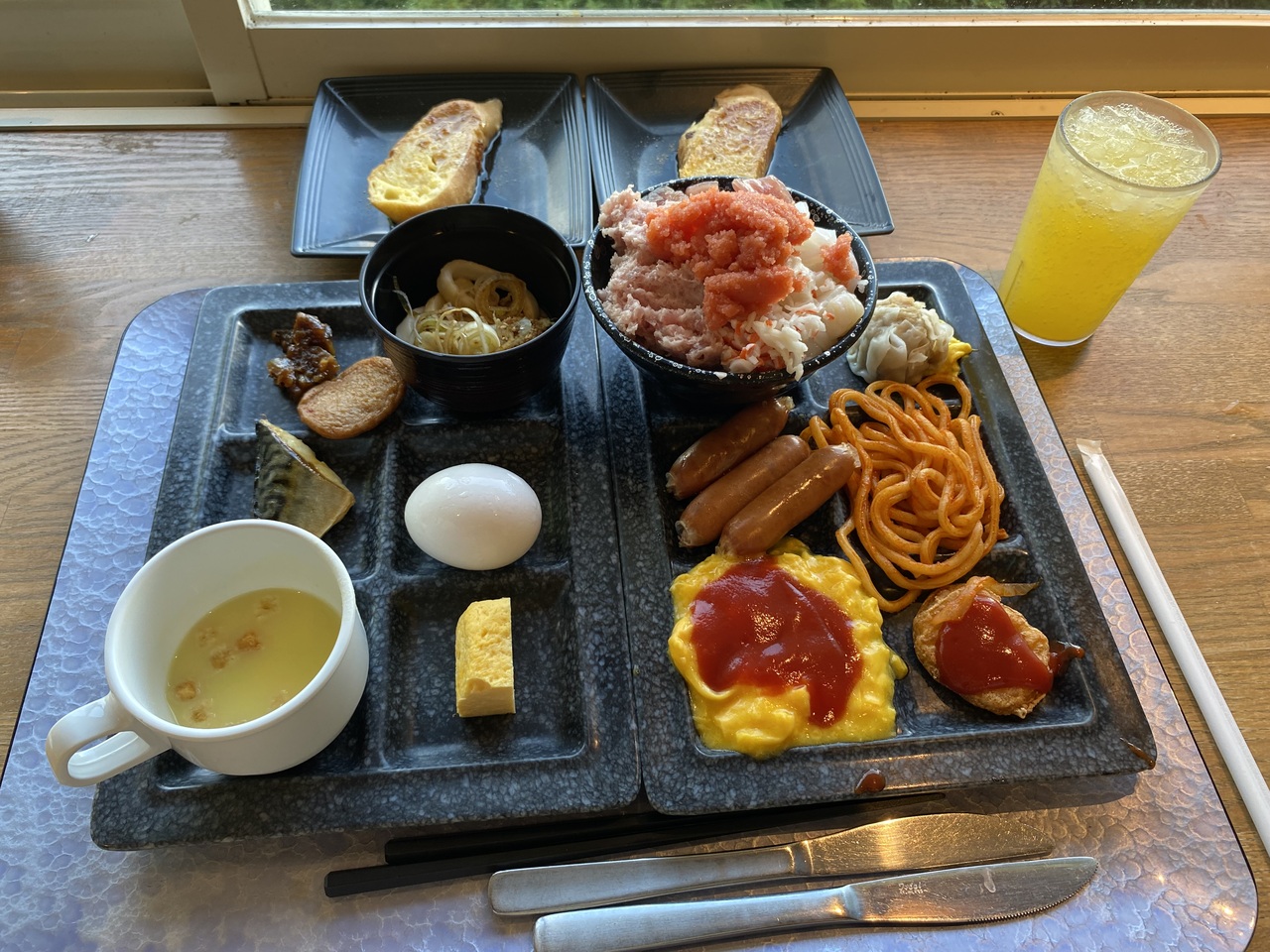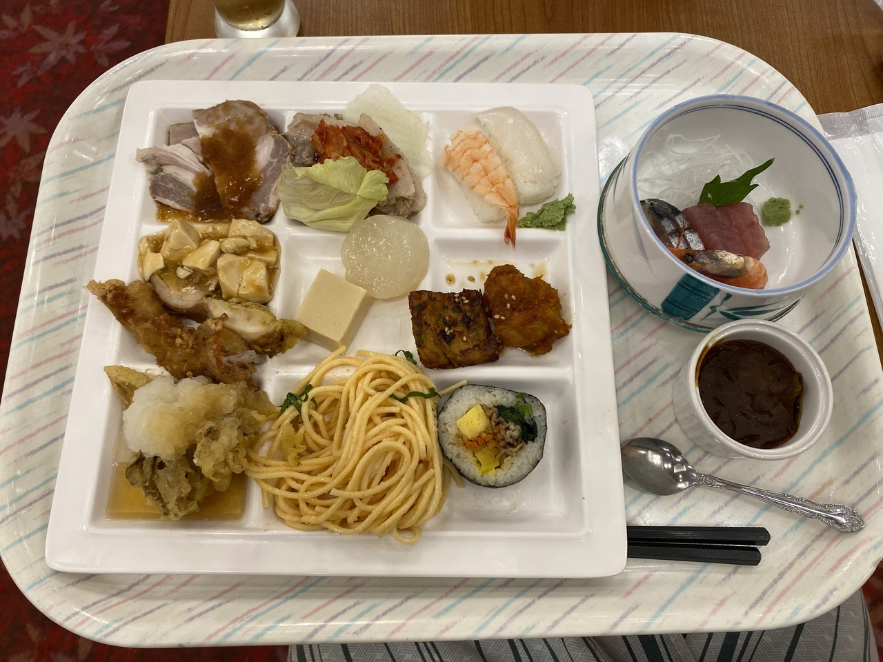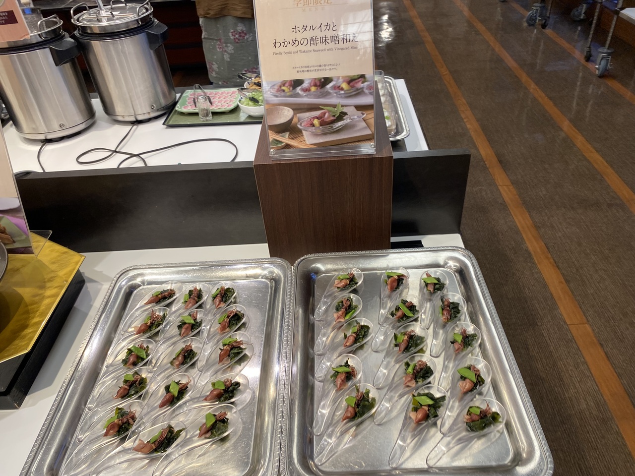 私史上最高級のバイキングホテルステイでした。朝夕バイキングとも食べたことない料理が並びます。夕食はライブキッチンは一枚肉の厚切りステーキも食べ放題。デザートもかなり豊富。露天風呂は森の中で入浴しているような素晴らしいロケーションでした。部屋はおひとり様でもツインで居心地も良かったです。朝食バイキングのライブキッチンはオムレツでした。朝も夜も信州名物のメニューも豊富でりんごを使った料理も豊富でした。