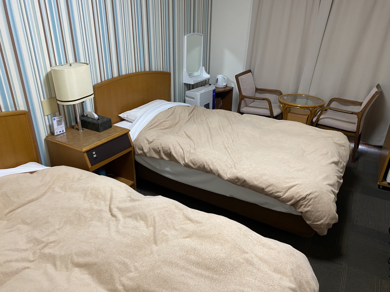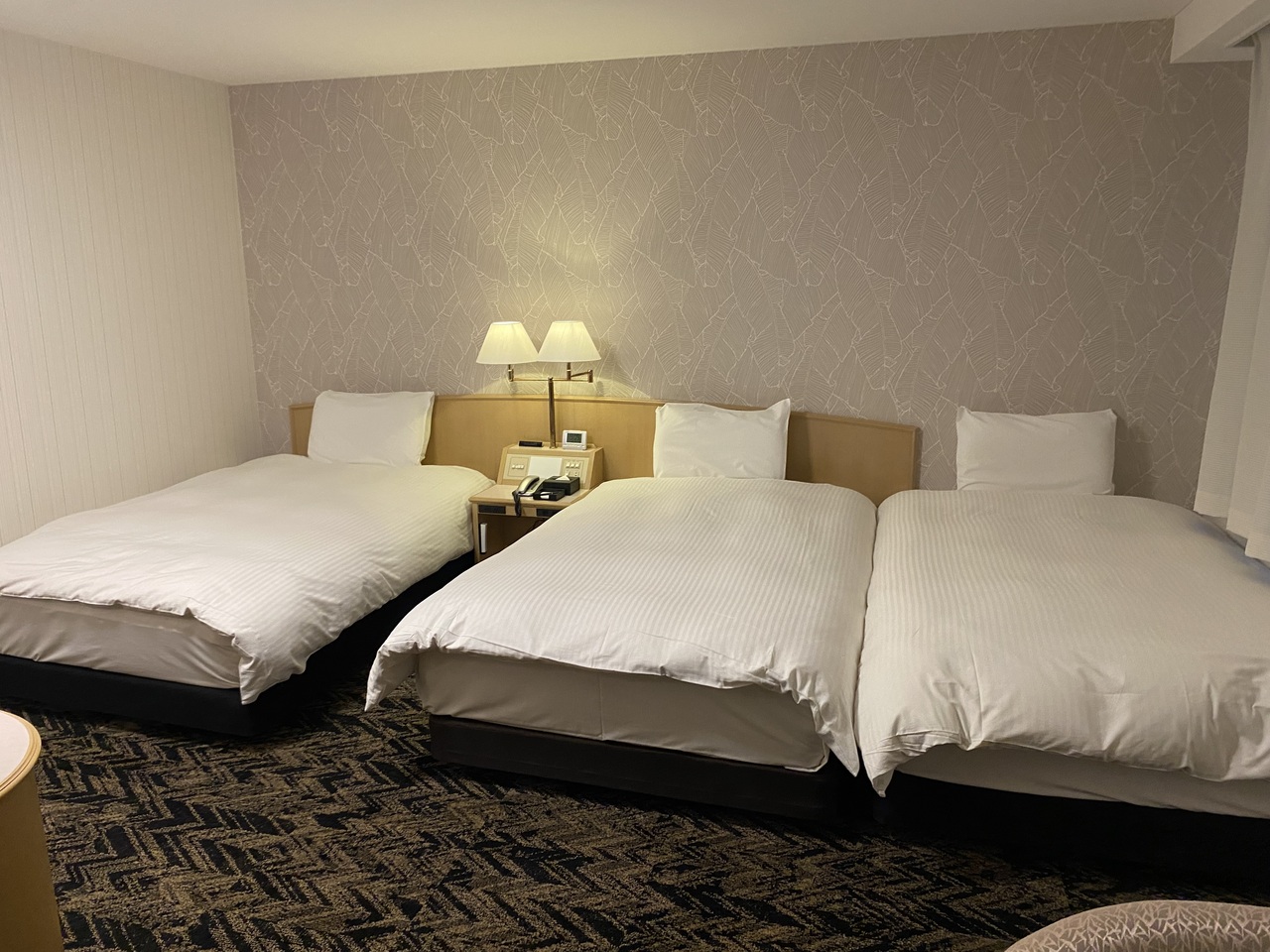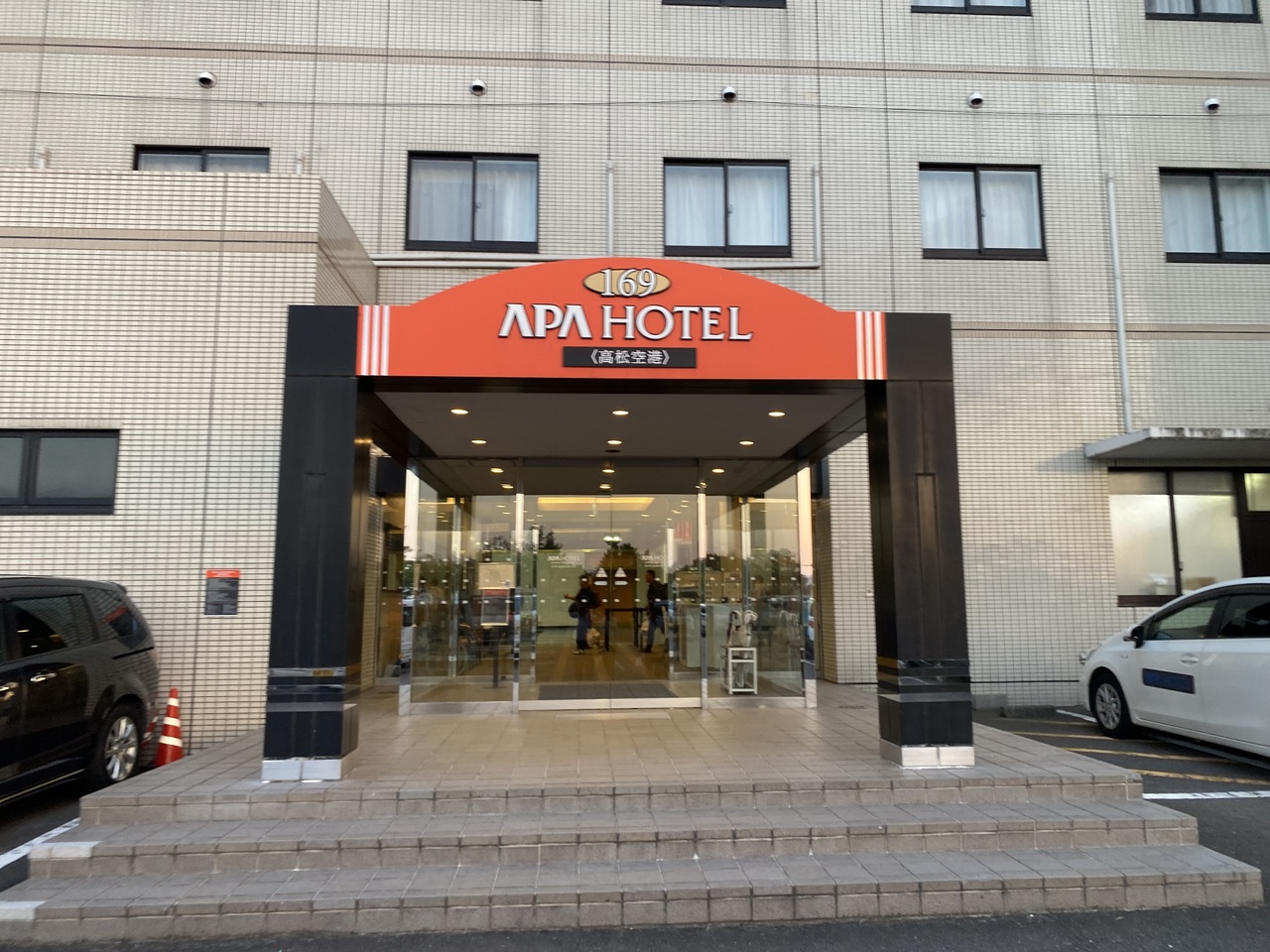 高松空港から車で5分以内の部屋数の多いアパホテルです。館内はまずロビーがかなり広いです。お遍路巡礼の宿になっているので、団体客も多いのかも知れません。朝食バイキングもあります。車で30分圏内に骨付鳥の名店一鶴や早朝から営業の讃岐うどん店も複数あります。ホテルは最上階に温泉があり、サウナ・水風呂・内風呂があります。無料マッサージチェアや漫画本のある休憩室もあります。お部屋はアパホテル標準のインテリアとアメニティがあります。間際予約でお一人様だけどトリプル部屋でした。