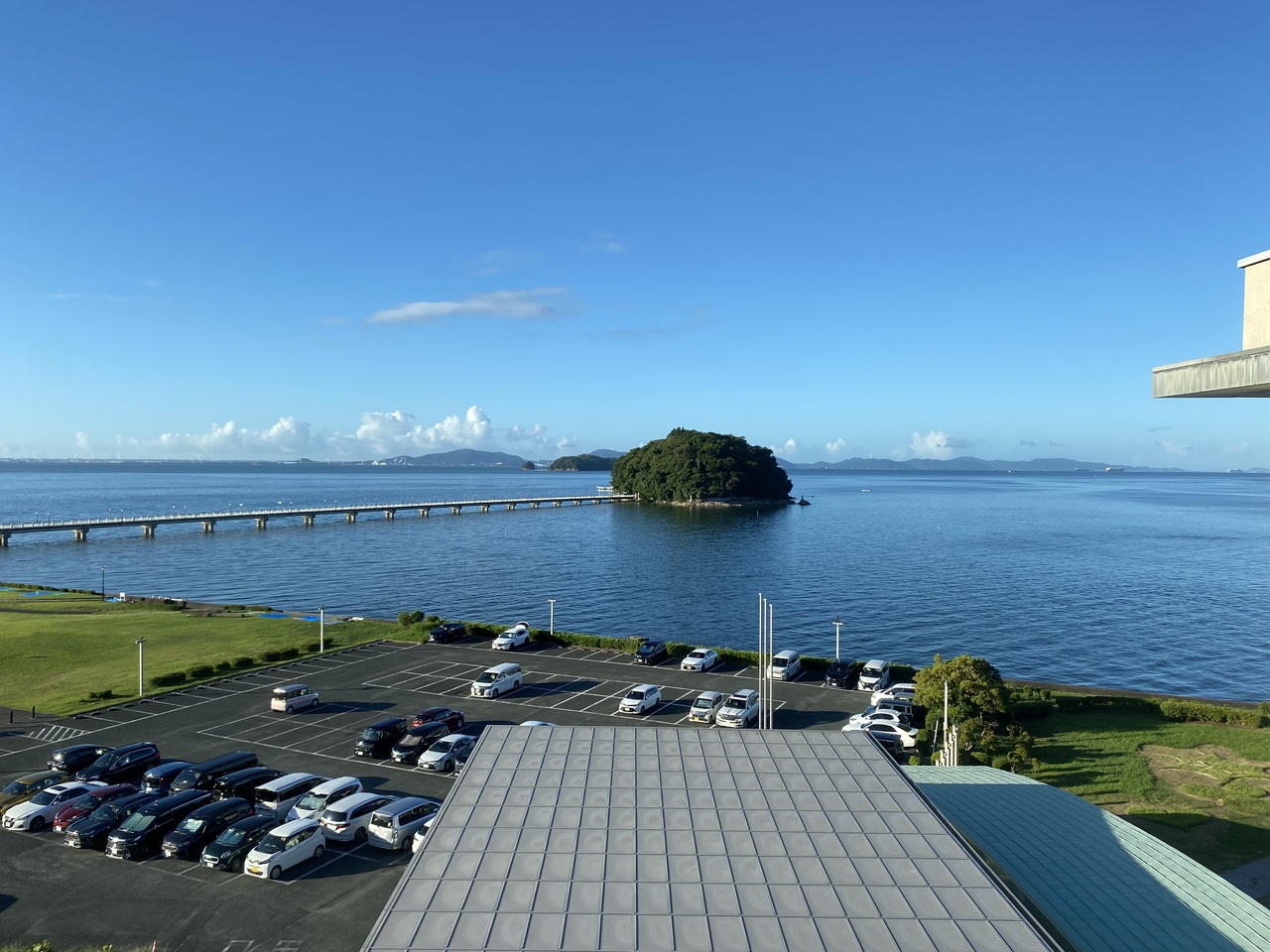 JR蒲郡駅から車で5分、観光名所竹島の目の前にある昔からあるリゾートホテルです。ホテルの前は砂浜です。隣には蒲郡クラッシックホテルもあります。館内はチャペルもあり、バブリーな広いラウンジはエスカレーターも2台ついてます。景色のいい温泉は日帰り温泉もやってます。たまたま夏のバイキングフェアーでおひとり様で泊まりしました。あまり食べたことないメニューとメロン食べ放題です。シングルの部屋でも広くて快適でした。