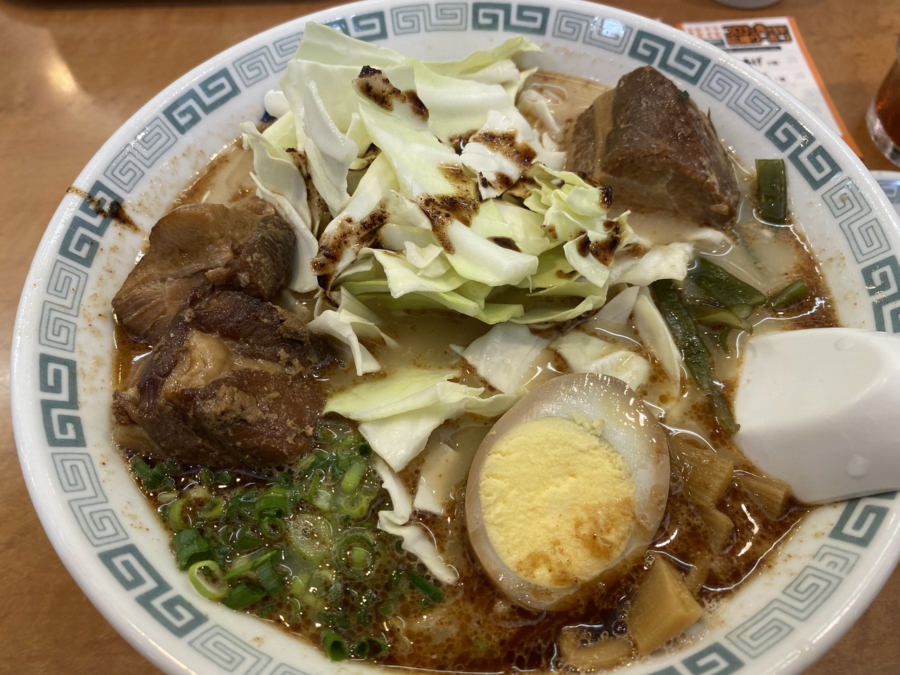 東京に行くとよく歌舞伎町に食べに行ってました。ここの角煮(太肉)がトロトロで絶品です。特に脂身の美味しさたるや。。。。キャベツとラーメン合います。麺も細麺でなくガッツリおいしいです。ようやく本店見参で満足です。