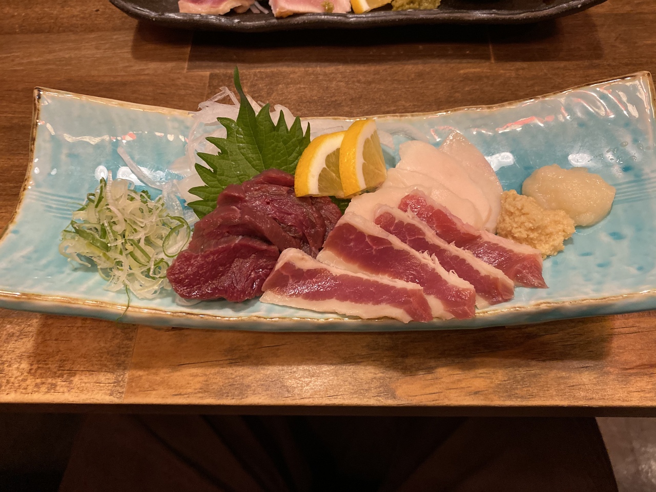 名古屋にもある昭和食堂のグループです。ここの店のオススメは1人でも飲み放題できます。しかも安いし種類豊富。ドーミイン熊本に泊まると割引券ついてきます。もちろん熊本名物馬刺しもあります。お値打ちに1人でのむならオススメだす。