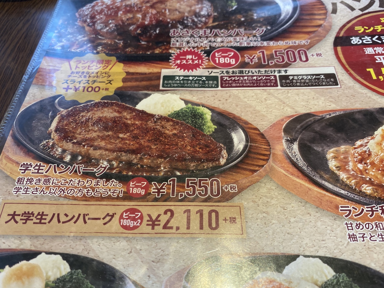 1980年代の西部警察名古屋ロケで店が爆破された場所です。建物は当時と変わっていません。昭和の時代家族で名古屋でいいものを食べに行くときの店の選択肢にあさくまはどこの家庭でも入っていたと思います。昔は学生ステーキというステーキ肉のハンバーグは安価でオススメでした。いまは学生ハンバーグという名で二枚だと大学生ハンバーグになります。