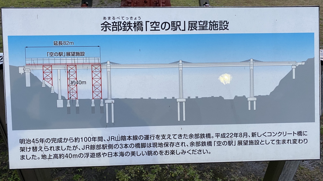 JR山陰本線の餘部駅はかなり景色がオススメです。旧線鉄橋も一部残してあり、展望台みたいになってます。昔は急坂を登らないと行けなかったですが、今はエレベーターもあります。道の駅もできてご当地グルメも食べれます。