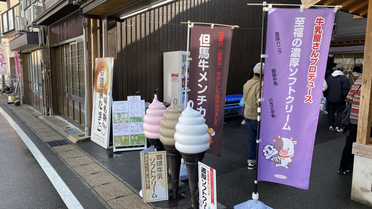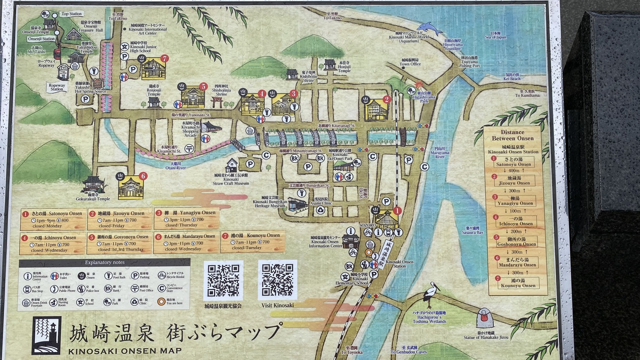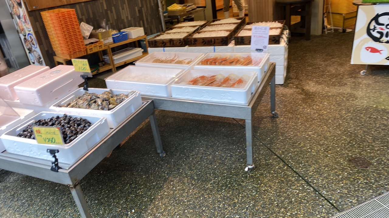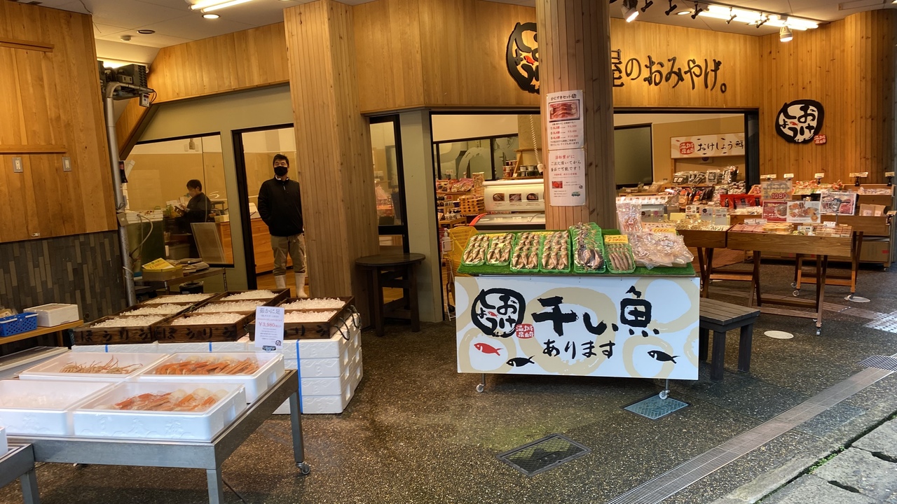 JR山陰本線城崎温泉駅から徒歩3分のとこのお土産街の中に店はあります。海産物から地元のお土産まで品数豊富です。2階にレストランがあり、名物の海鮮丼などメニューも品数豊富です。オープンが早めなので外湯巡りの途中に来ました。