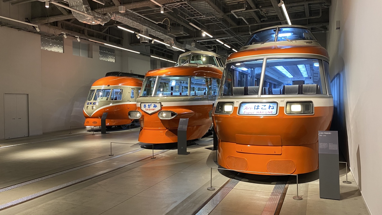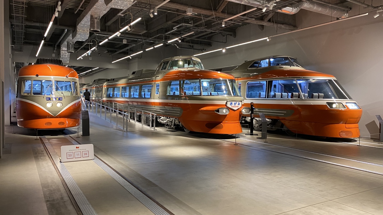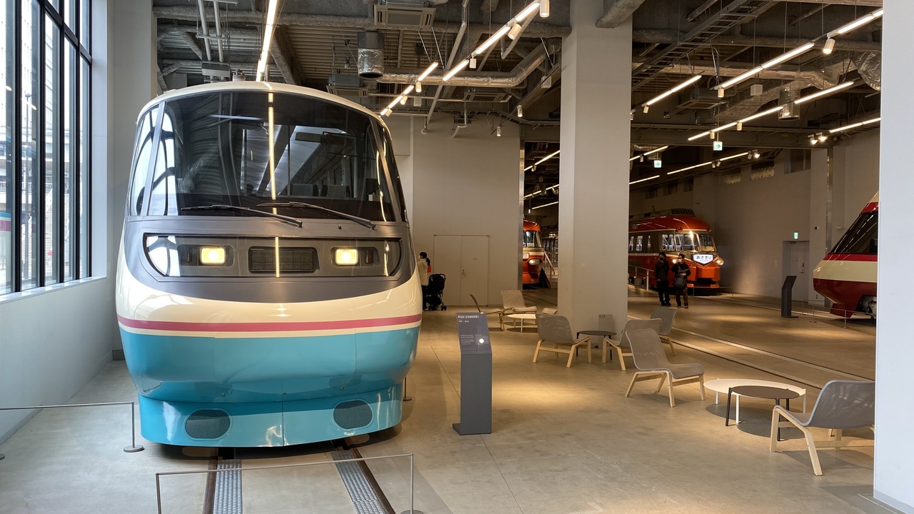 名鉄パノラマカーのライバルである小田急ロマンスカーの保存車両を見に来ました。海老名駅構内通路にありますが、目立った看板はなく1度通り過ぎました。東口通路を進み左側にあります。中は歴代の全てのロマンスカーがすべて揃ってます。