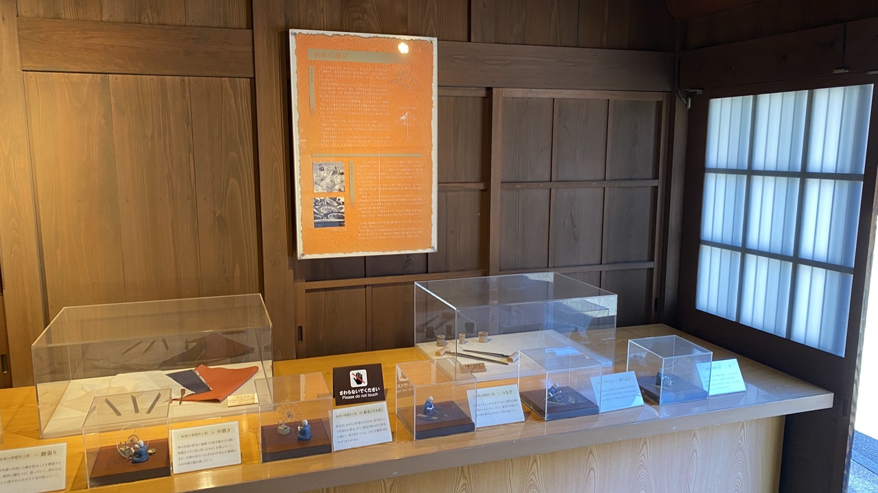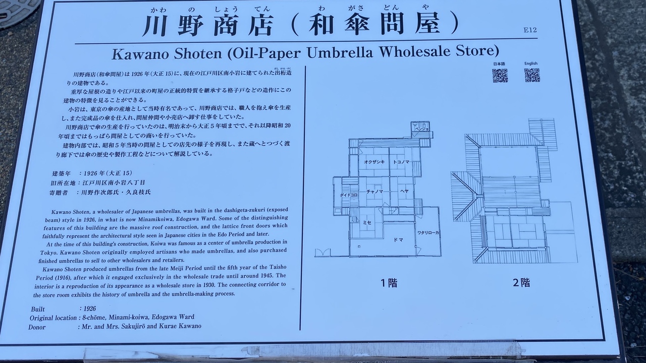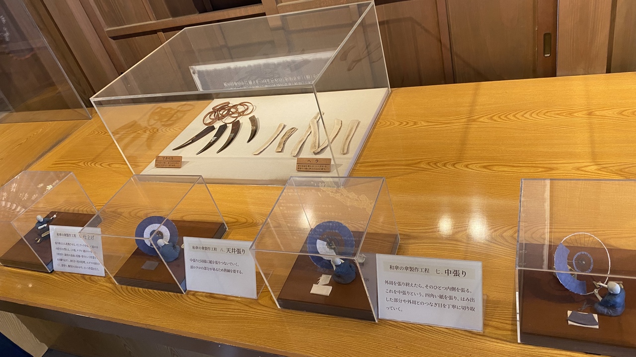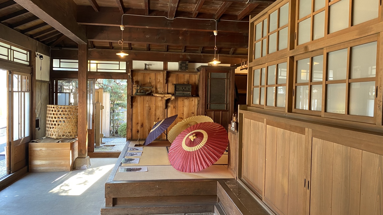 江戸東京たてもの園の東ゾーンにある建物です。和傘問屋なんて初めて聞きましたが、その時代には必須の店なんですね。中には和傘の展示と、和傘の作り方がわかりやすくミニチュアで展示してあります。様々な和傘がかざってあります。