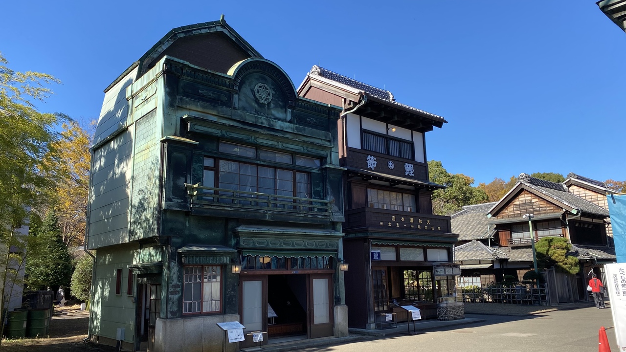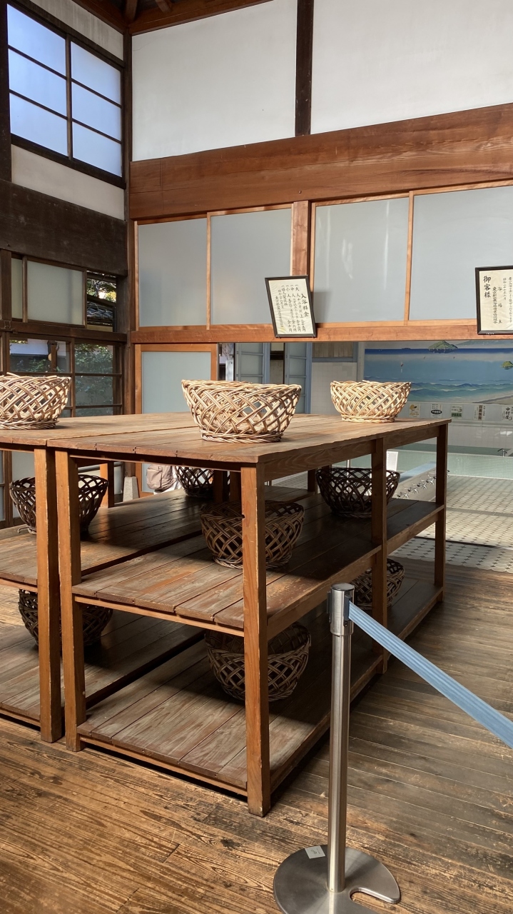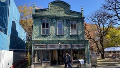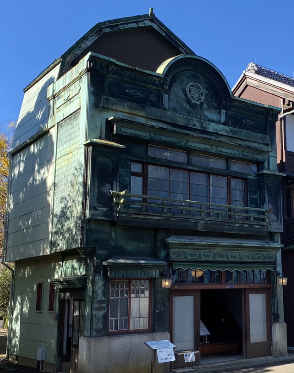 江戸東京たてもの園の東ゾーンにある建物です。和傘問屋なんて初めて聞きましたが、その時代には必須の店なんですね。中には和傘の展示と、和傘の作り方がわかりやすくミニチュアで展示してあります。様々な和傘がかざってあります。