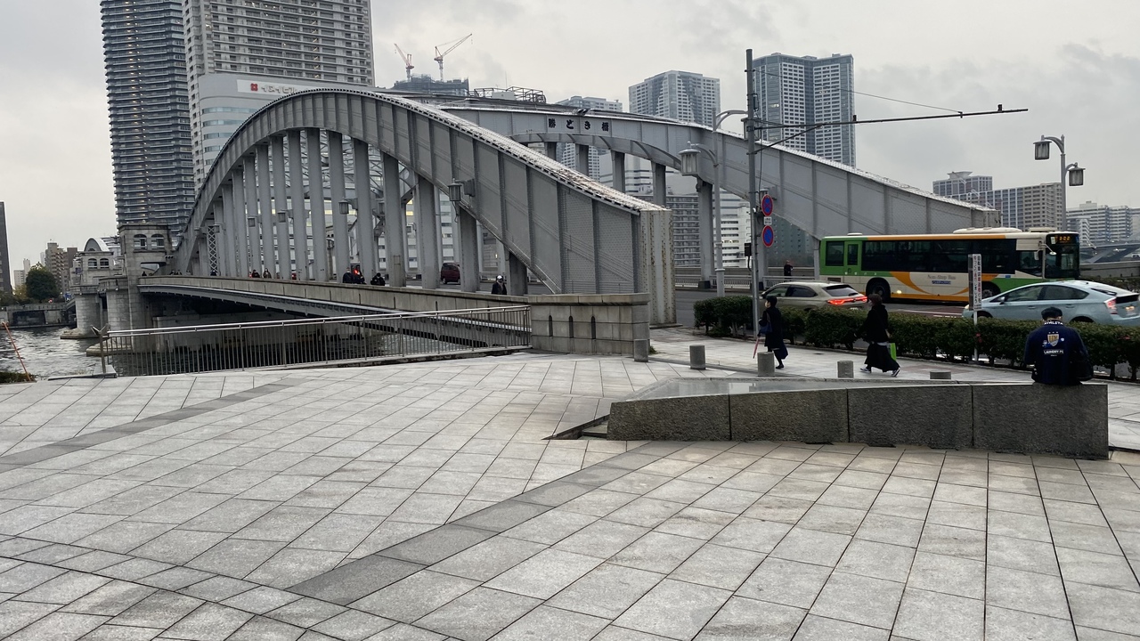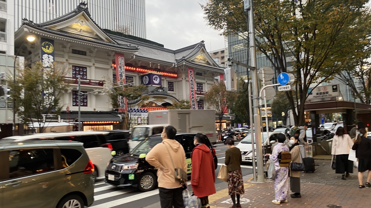 銀座駅から徒歩で行ける場所にある歌舞伎座。1889年(明治22年)に開場しており、2013年に歌舞伎座タワーと合わせて新築開場しましたが、1979年頃ジョン・レノンとオノ・ヨーコも来たそうです。近くには勝鬨橋や築地市場もあります。