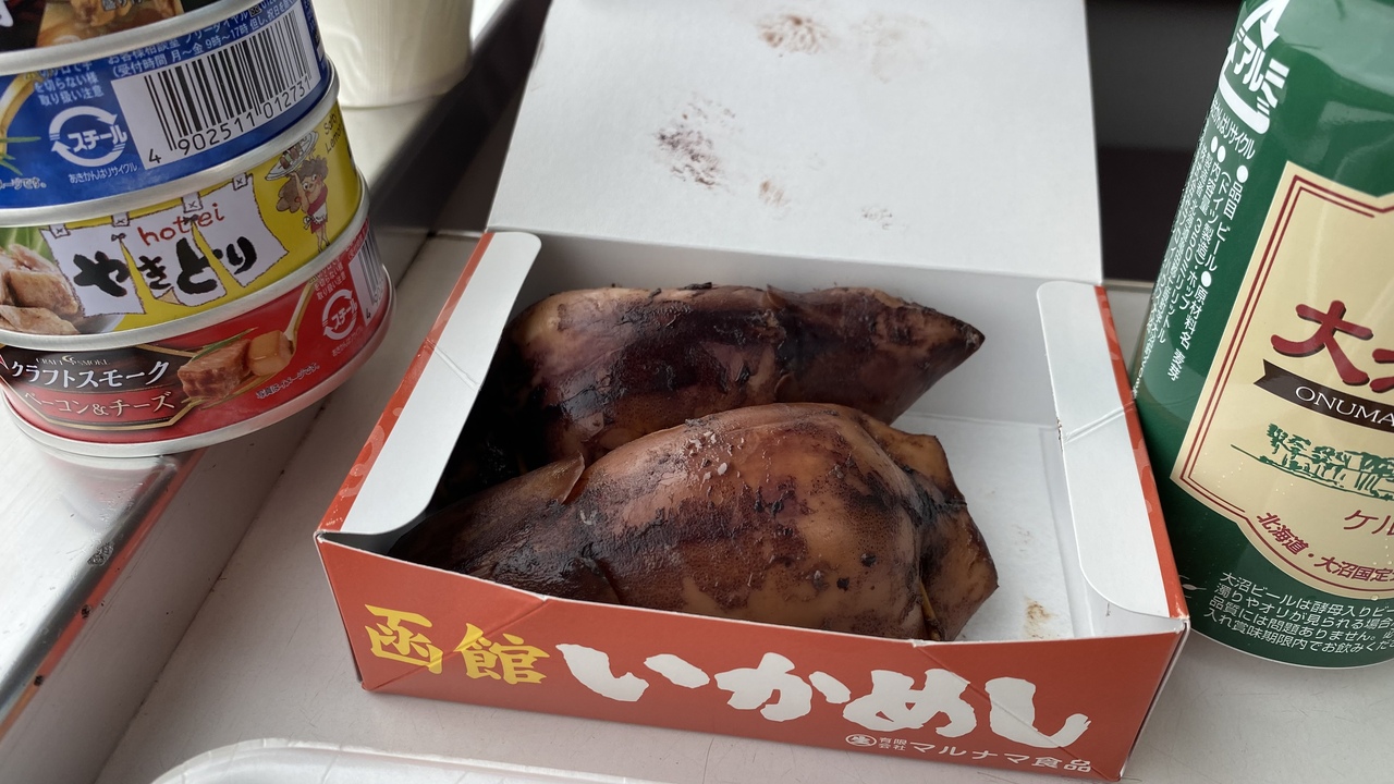 函館駅のすぐ横に函館駅前横丁ができまして、昭和レトロ感のある飲食店の並ぶ店の入り口のところにあります。そのまま常温で食べれる酒のつまみに名物のいかめしを探していたらたまたま見つけて購入しました。冷めてても柔らかく美味しかったです。